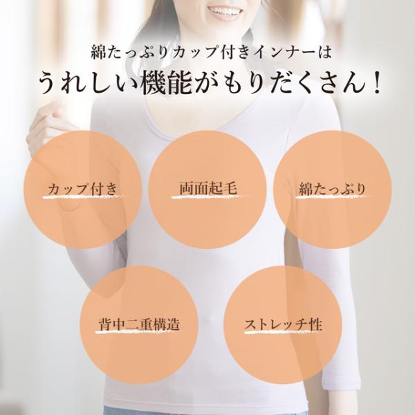 インナー カップ付き 綿たっぷり 長袖 綿混 微起毛 ストレッチ性 背中二重構造 天然素材 チクチクしない 締め付けない ブラトップ 部屋着 2枚組