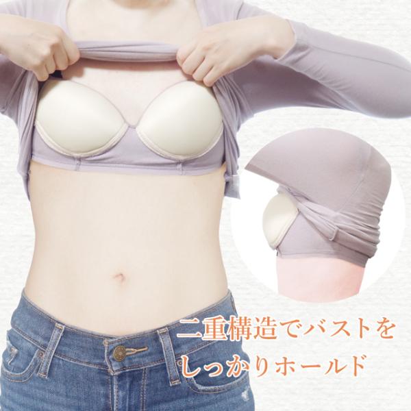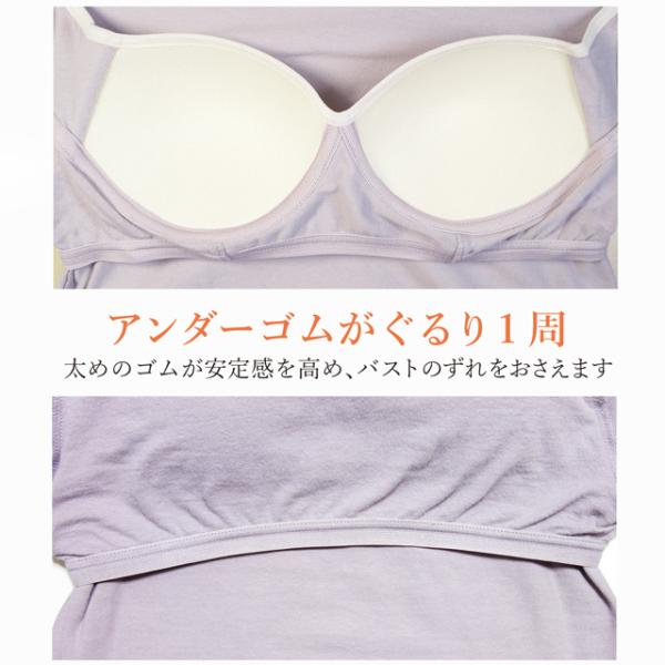 ふわっとやわらかな肌ざわりで、おうち時間にも、お出かけの際にはお手持ちのトップスを1枚さっと羽織るだけで、コーディネートが完成してしまう便利なカップ付きインナーです。