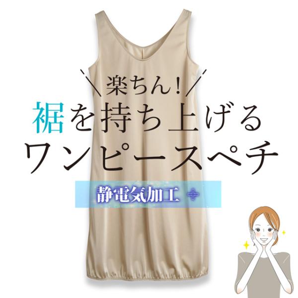 ペチコート ペチワンピ 静電気防止 ワンピース インナー ノースリーブ 透け防止 透けない スカート 膝上 膝下 裾ゴム トイレ