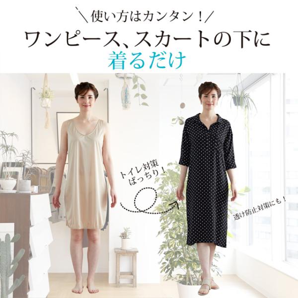 これ一枚で、まとわりつきや下着のラインが目立つのも防ぐ!一枚で何役にもなるお役立ち便利アイテムです。