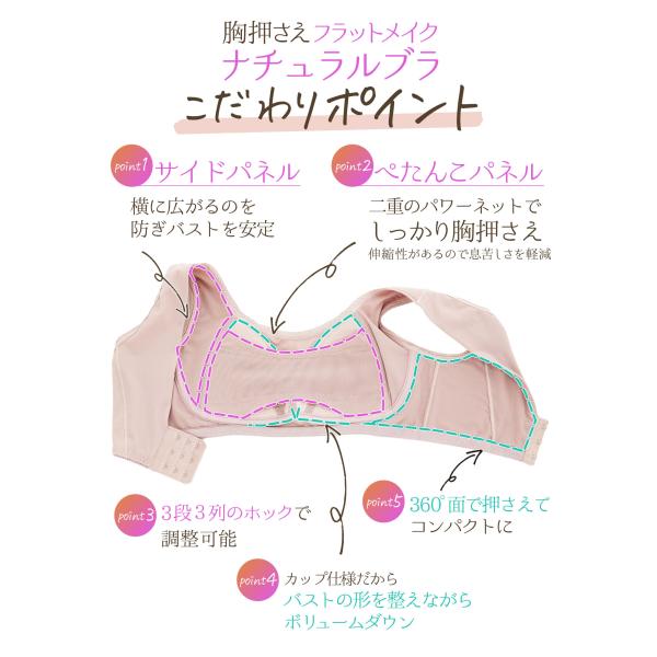 胸を小さく見せるブラ ブラジャー ノンワイヤー 大きいサイズ 補整 補正 脇肉 フラットメイクナチュラルブラ 小さくする 50代 40代 30代