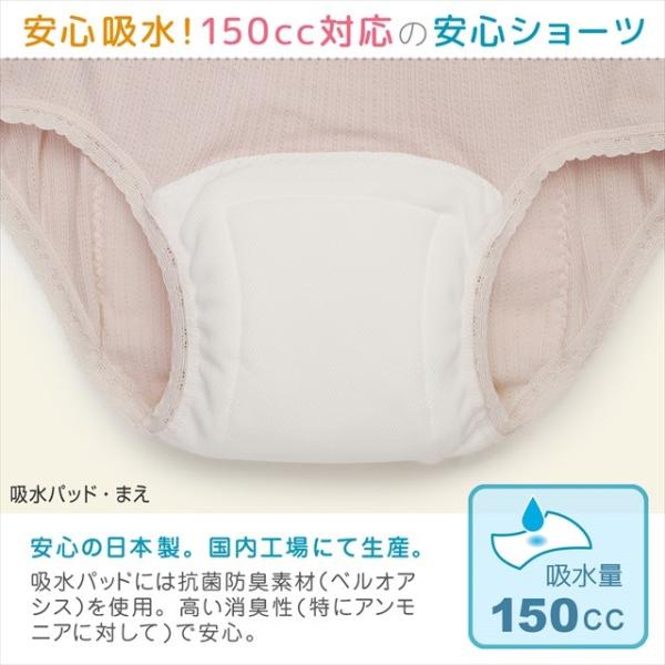 尿漏れパンツ 女性 吸水パンツ 綿変わり織 腰ゴム 150cc 大容量 M L LL モカ ピンク 日本製 大きいサイズ コットン 消臭 失禁 2枚組 2色組