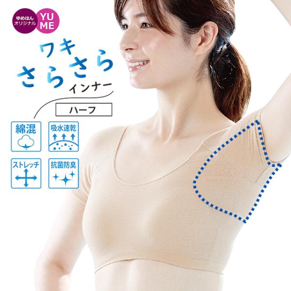 汗取りインナー レディース 綿混 防臭 汗脇パッド 脇汗 半袖 汗ジミ 対策 防止 ハーフタイプ 大型パッド 丈短 ストレッチ ショート丈