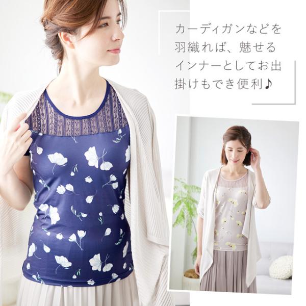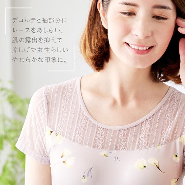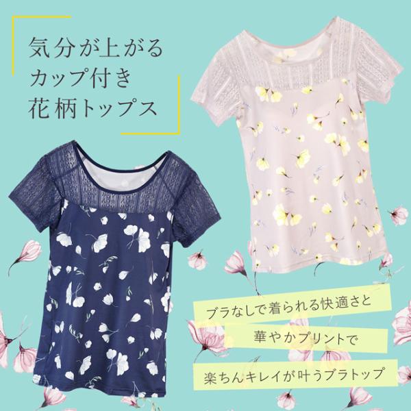 カップ付き インナー ブラトップ 吸水速乾 フラワープリント レース 半袖 フレンチ袖 花柄 見せインナー ブラトップ Tシャツ アウトレット