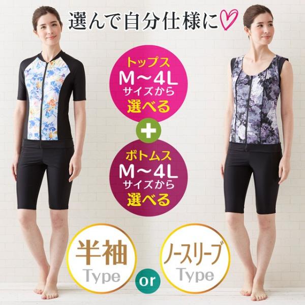 フィットネス水着 レディース 40代 50代 60代 セパレート 半袖 大きいサイズ 上下セット 帽子 めくれ防止 パッド付 アクアビクス