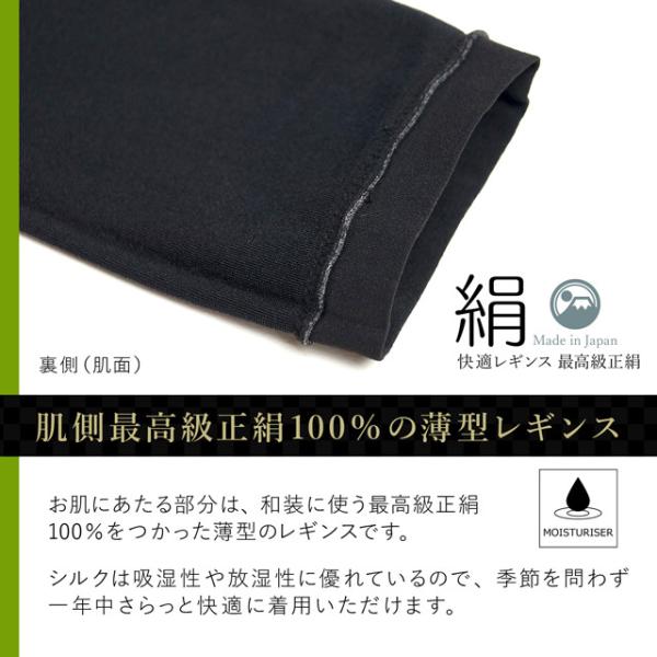 レギンス 7分丈 日本製 シルク 肌側シルク100% のびのび しめつけない快適 最高級正絹 薄型 股上長め