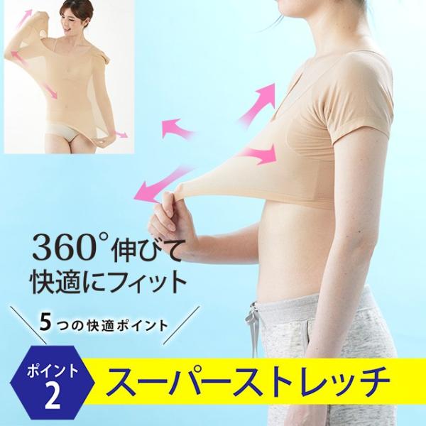 汗取りインナー レディース 綿混 防臭 汗脇パッド 脇汗 半袖 汗ジミ 対策 防止 ハーフタイプ 大型パッド 丈短 ストレッチ ショート丈