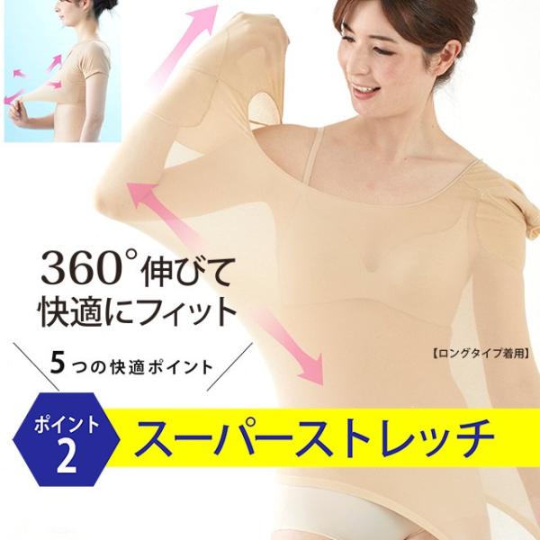 汗取りインナー レディース 綿混 防臭 汗脇パッド 汗取り 脇汗 半袖 汗ジミ 防止 対策 ロングタイプ 大型パッド ストレッチ 2枚組