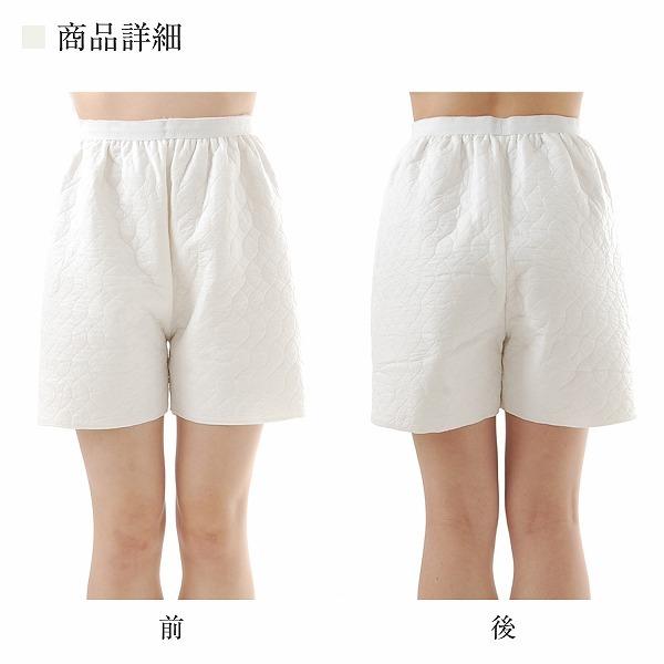 「防水布+吸水素材」で腰から太もも中ほどまで、モレエリアをカバー