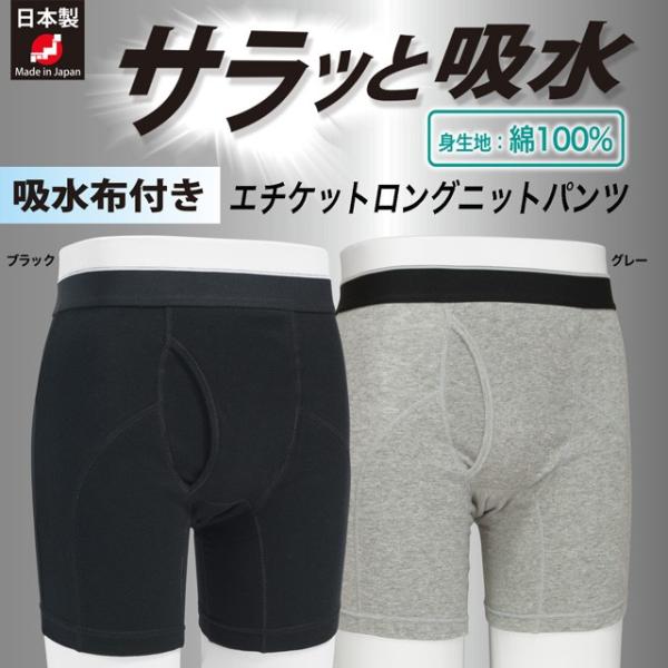 尿漏れパンツ 男性 紳士 メンズ 安心パンツ 抗菌消臭 日本製 失禁 ボクサーパンツ 綿100% パッドのない エチケットロングニットパンツ