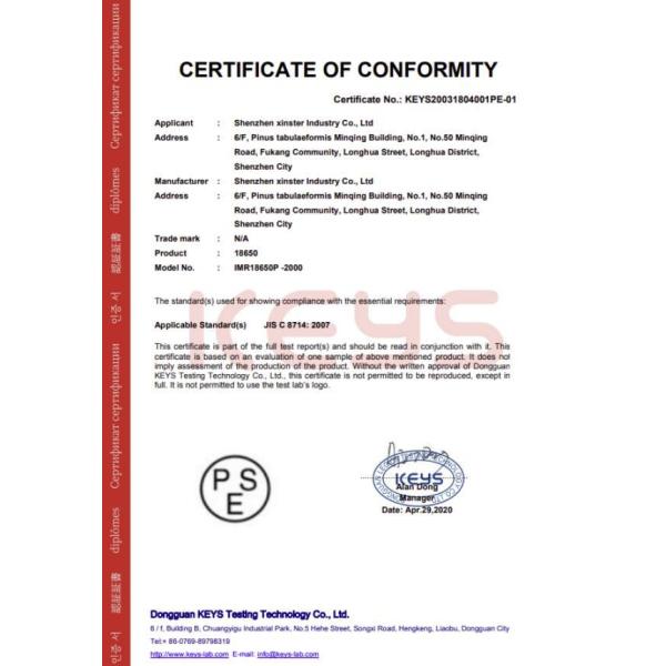 PSE認証済み 大容量2000mAh