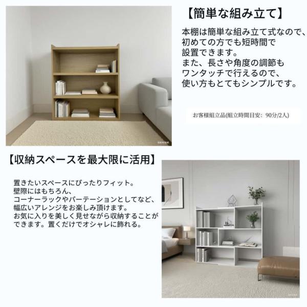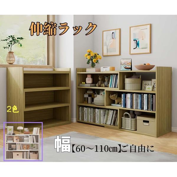 本棚 大容量 伸縮ラック 幅60〜110cm 奥行き30cm 高90cm A4紙入れる シェルフ 収納棚 ディスプレイ収納 木製 ホワイト 白 クルミ色 胡桃 ドライバー付き 3003-2