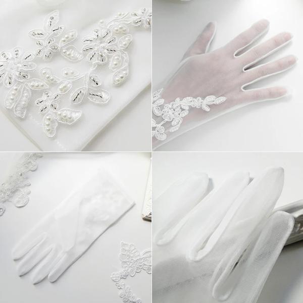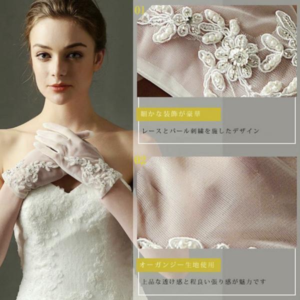 ウエディンググローブ 結婚式 ショート ベール 花嫁 手袋 オーガンジーにレースとパールビジュー刺繍を施した上品なウェディンググローブ