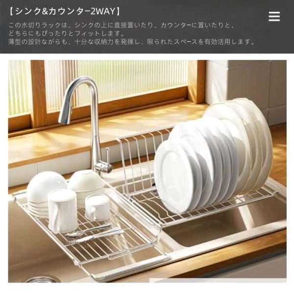 食器スタンド 水切りラック キッチン シンク上 伸縮自由スライド 調整可能食洗器 お皿 折りたたみ 伸縮可能 錆びない 2way伸縮 滑り止め付き 省スペース