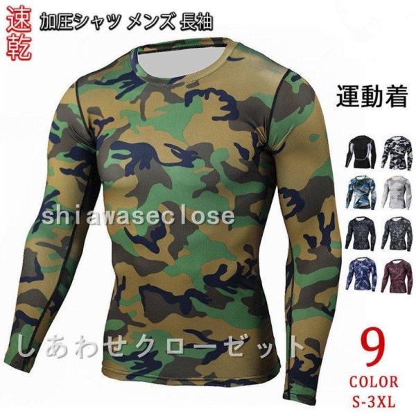 加圧シャツ アンダーシャツ メンズ 長袖 コンプレッションウェア トレーニングウェア 加圧インナー 吸汗速乾 運動着 おしゃれ 黒 迷彩 9色