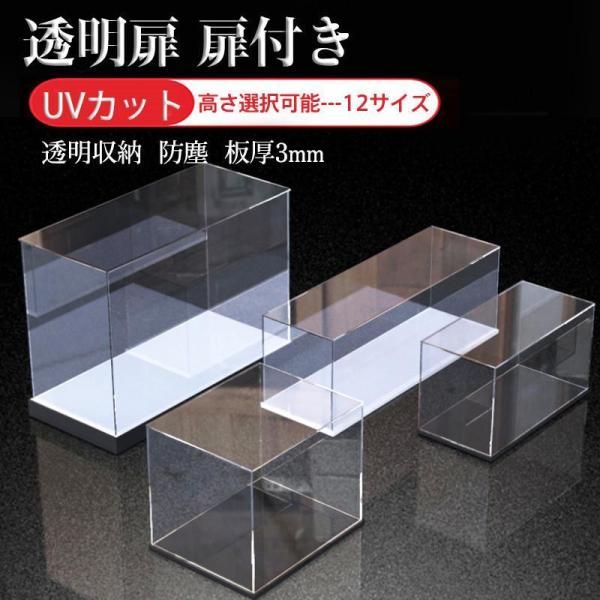 フィギュアケース コレクションケース 透明扉 扉付き 人形ケース アクリケース 高さ選択可能 UVカット 12サイズ 板厚3mm 透明収納 おもちゃ