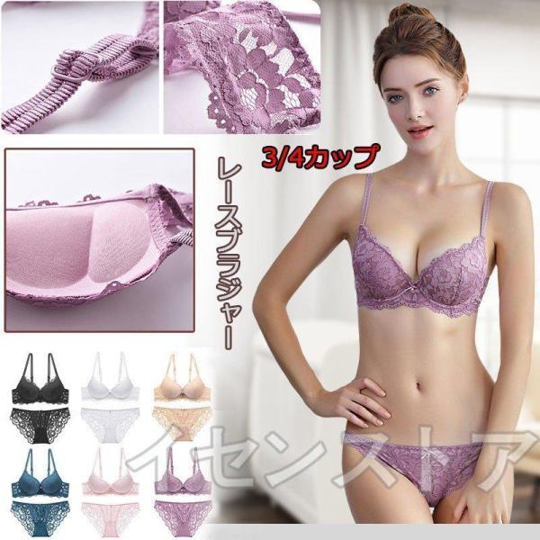 ブラジャー ブラショーツセット3/4カップ 盛りブラ レディース 下着 上下セット 花柄 レース ランジェリーワイヤーブラバストアップ