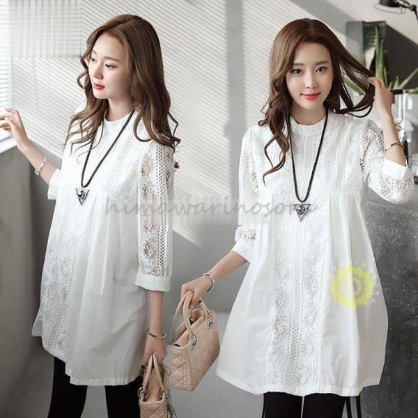 マタニティー服 ワンピース チュニック オシャレ 春夏 五分袖 レースチュニック ワンピース マタニティー 妊婦服 白 結婚式 韓国風 オシャレ 新作