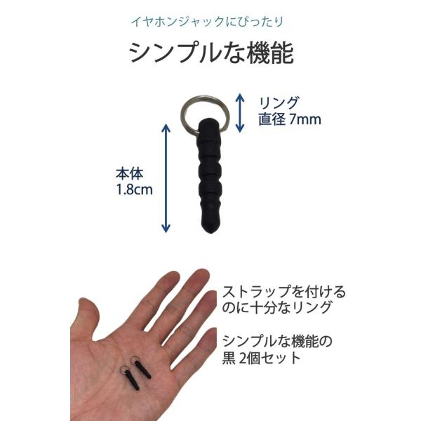 ストラップ用 イヤホンジャック リング付き 黒 2個セット 3.5mm スマホ パソコン ストラップ シンプル アクセサリー プラスチック イヤホンジャックピアス