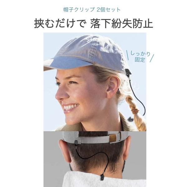 商品名:帽子クリップ 2個セット ハットクリップ 防風 強風 自転車 落下防止 帽子止め 紐 ストラップ 帽子留め クリップ アウトドア 釣り 散歩 旅行