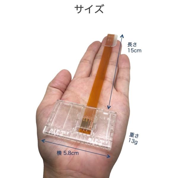 サイズ:[ケース] 縦3.5cm x 横5.8cm x 厚み0.7cm、[ケーブル]長さ15cm