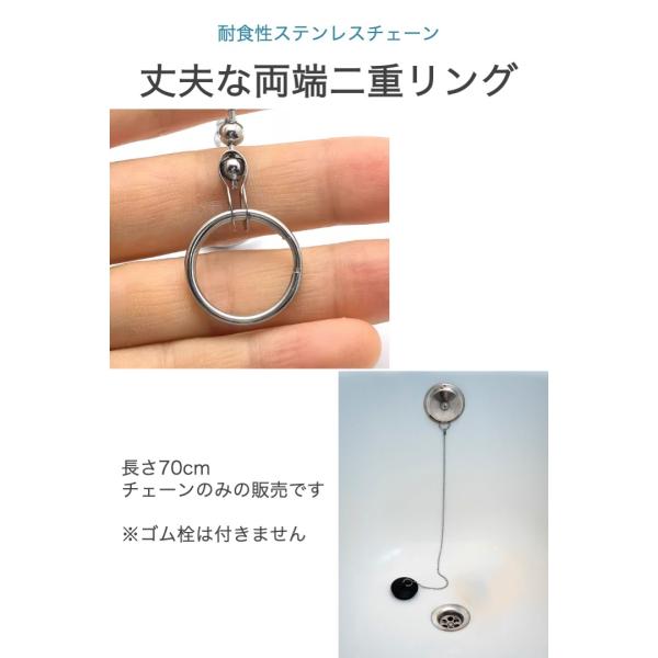 お風呂チェーン 長さ70cm 風呂の栓 チェーンのみ ステンレス 二重リング 風呂せん 鎖 バス ゴム栓 チェーン 交換 予備 DIY リング お風呂 チェーン