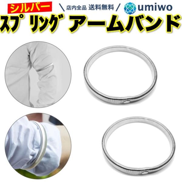 スプリング アームバンド シルバー 1組(2個)セット メンズ ループ 袖留め シャツ 長さ調整 アーム バンド ワイシャツ 袖 フォーマル ビジネス スーツ Yシャツ