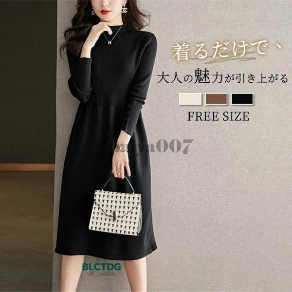 爆買 ワンピース レディース 40代 50代 きれいめ 秋 冬 秋冬 フォーマル 綿 無地 ハイネック 長袖 ロング丈 Aライン