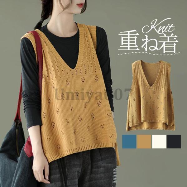 ニットベスト ジレ レディース 秋冬 春 プルオーバー Vネック セーター オフィス ノースリーブ トップス 重ね着