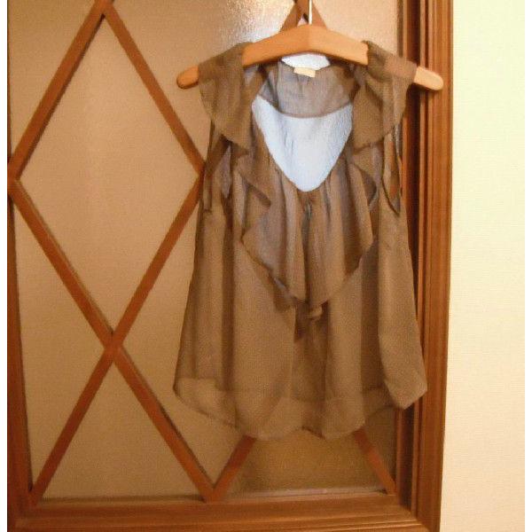 フリル衿の付いた袖なしオーバーブラウスの型紙です。