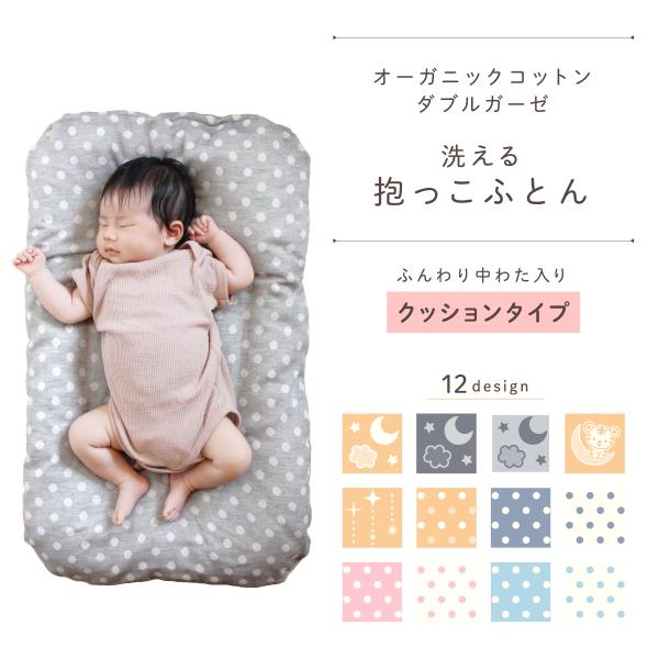 抱っこ布団 日本製 40×65cm オーガニックコットンダブルガーゼ クッション 綿100% 月と雲 トラ 星 水玉 ベージュ 洗える 新生児 出産準備 送料無料