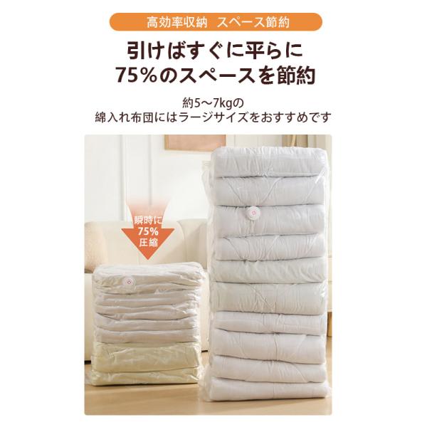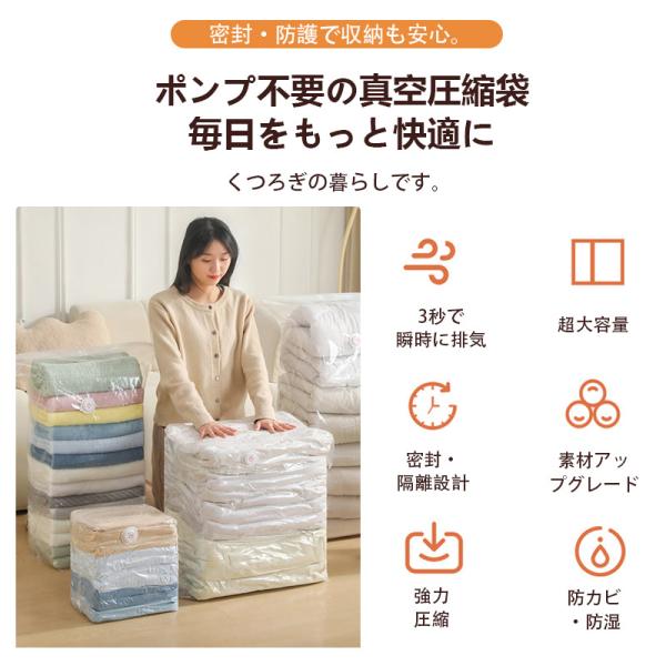 関連キーワード:布団圧縮袋 ポンプ付き 掃除機不要 圧縮袋 布団 衣類 立体 マチ付き 大容量 立体 押すだけ ラージサイズ6枚 クローゼット スッキリ収納 コンパクト 旅行