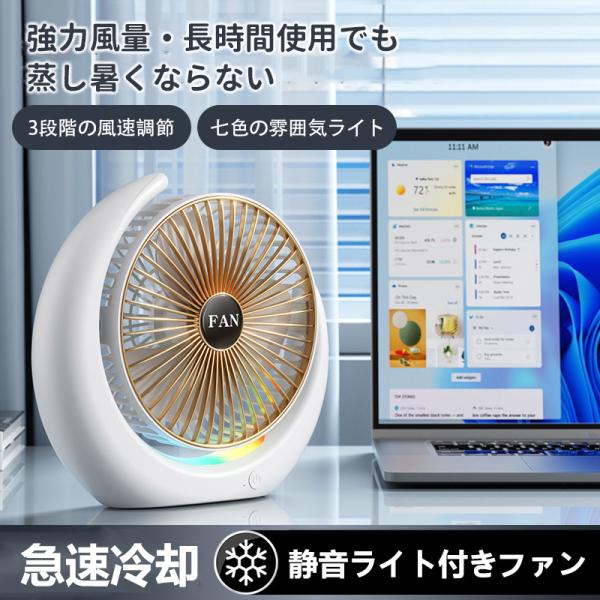 扇風機 卓上 DCモーター サーキュレーター 小型 3段階風量調節 USB充電 ライト付け オフィス 換気 送風 衣類乾燥 空気循環 軽量 卓上扇風機