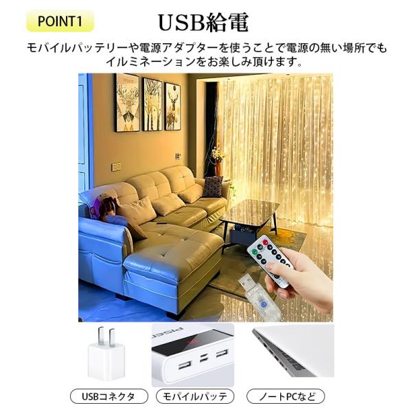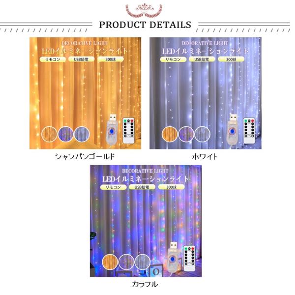 爆買 カラフル3x2m即納 イルミネーション カーテン カーテンライト室内 LED USB イルミネーションライト 300球 インテリア 光る クリスマス アウトドア 3m