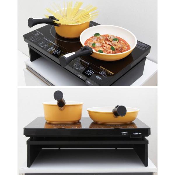 2口IHクッキングヒーター【EIH1470-B】【EIH1470V-B】専用の設置スタンドです。組立後、IHクッキングヒーターを置いてお使いいただけます。IHクッキングヒーターを専用設置スタンドにのせると高さが約18cmになります。※お客様組立て商品です。