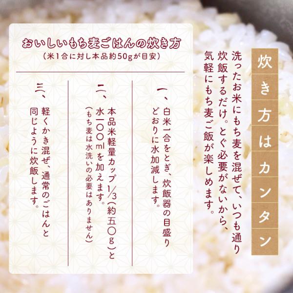 研いだ白米に混ぜて炊くだけで、もち麦ごはんが楽しめます。