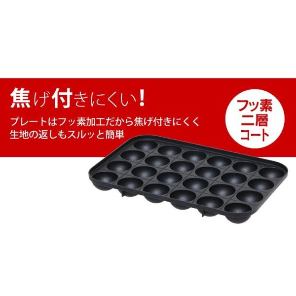 たこ焼き器 着脱プレート式 たこ焼きプレート 24穴 フッ素コーティング 卓上 プレート タコ焼き機 電気 着脱式 アイリスオーヤマ PTY-24-R *