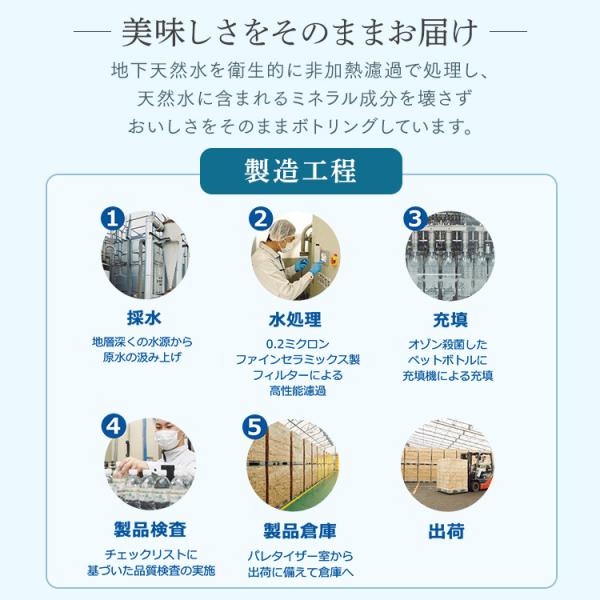 山々に囲まれ自然に恵まれた環境省の名水百選にも選定されている長良川中流域。その地下深くで長い年月かけて濾過された地下天然水を衛生的に非加熱濾過で処理し、天然水に含まれるミネラル成分を壊さずおいしさをそのままに充填しています。