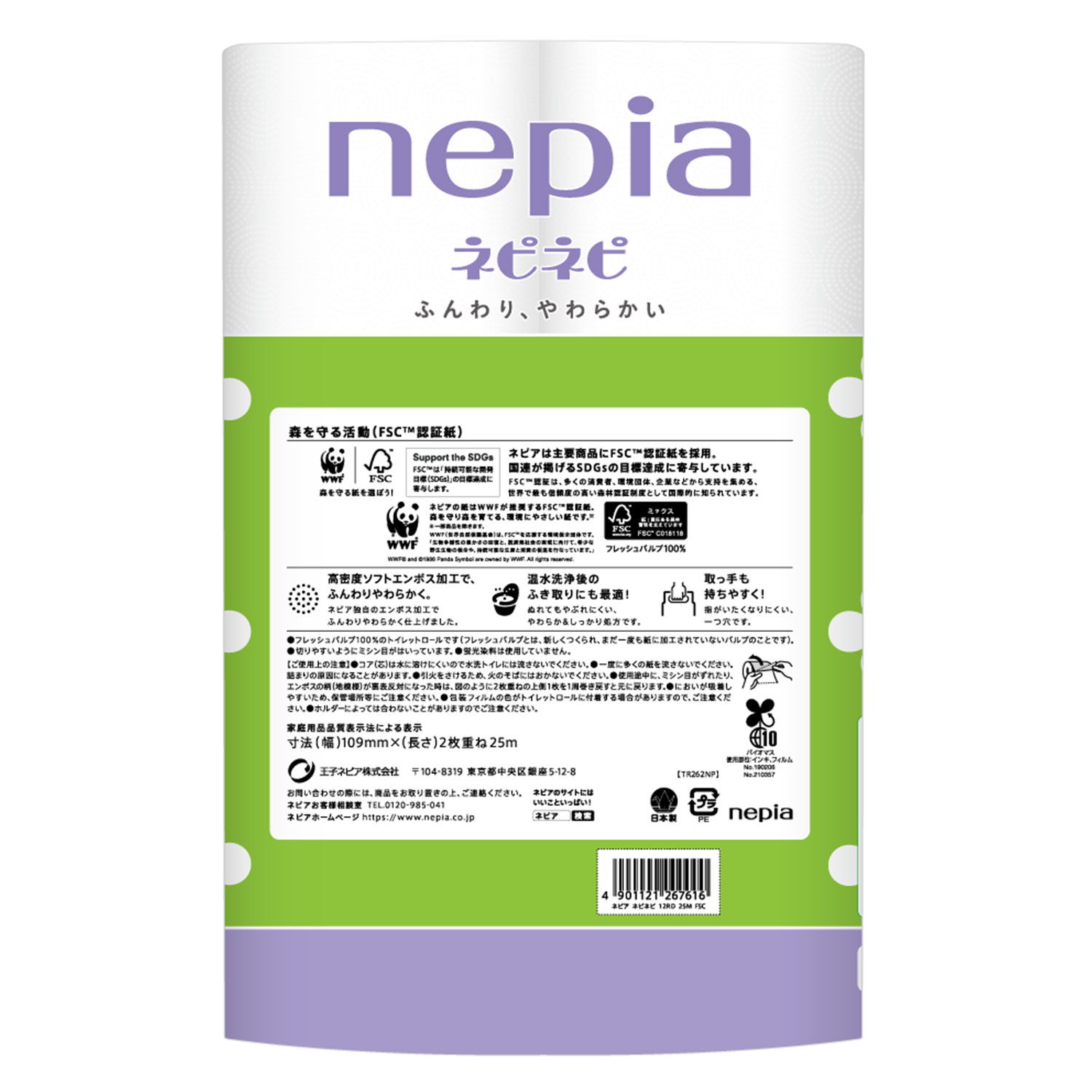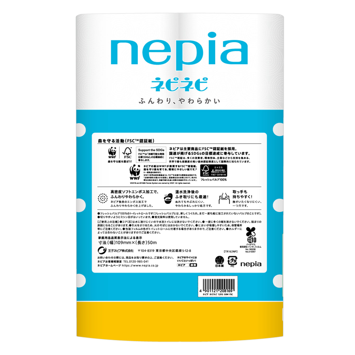 (検索用:トイレットペーパー ネピネピ やわらかい パルプ 吸水 12ロール シングル FSC 50m 4901121210575)