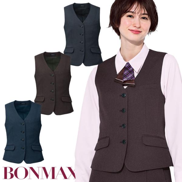 事務服 ベスト レディース 2WAYストレッチ AV1293 スマホが入るポケット 無地 制服 ユニフォーム ボンマックス 5号-15号 爆買
