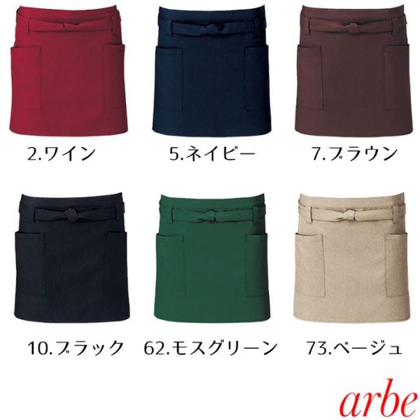 エプロン T6231 フリー 全6色 男女兼用 撥水 静電 飲食店 レストラン ホール ユニフォーム 制服 エプロン 腰下エプロン ショート丈 arbe アルベ 爆買