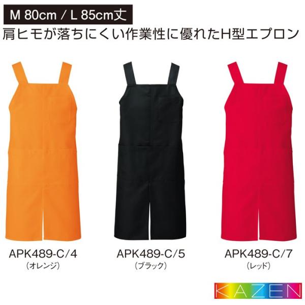 カゼン 胸当てエプロン H型 APK489 無地 前掛け 飲食店 ユニフォーム ホール 接客 制服 ユニフォーム KAZEN アプロン 爆買