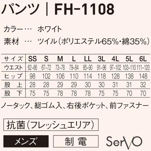 メンズパンツ FH1108 SS〜6L ホワイト 抗菌 飲食店 和食 割烹 厨房 調理白衣 ユニフォーム SerVo サンペックスイスト 爆買