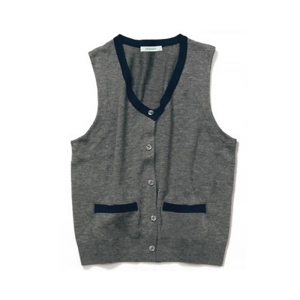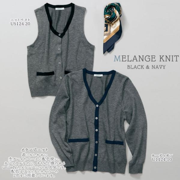 ニットベスト 前開き 事務服 レディース グレー 配色 U5124 UNILADY オフィスウェア 仕事服 制服 ユニフォーム 爆買