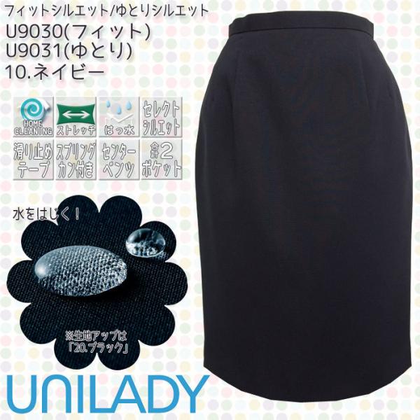 タイト スカート 事務服 U9030 U9031 フィット ゆとり ストレッチ オールシーズン ネイビー チャコール ブラック 制服 仕事服 受付 UNILADY 5号〜19号 爆買