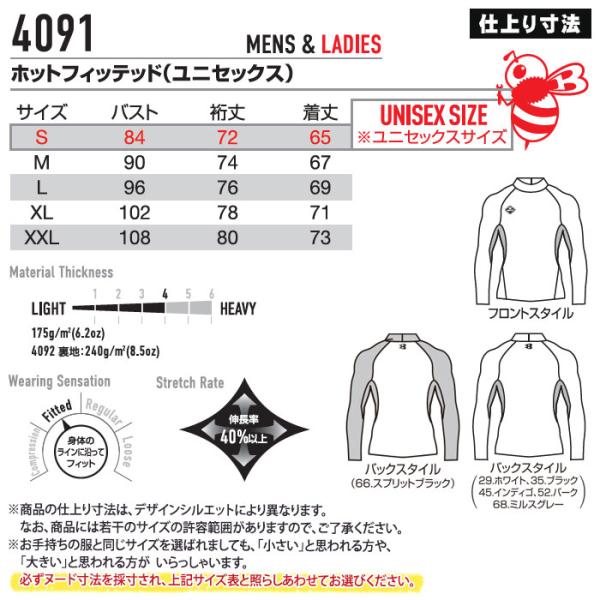 バートル インナー ホットフィッテッド 4091 長袖 シャツ コンプレッション アンダーシャツ 秋冬 裏起毛 防寒 男女兼用 吸汗速乾 作業着 作業服 BURTLE 爆買