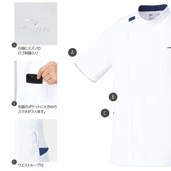 MIZUNO ミズノ MZ-0161 メディカルジャケット 半袖 メンズ 制菌 ケーシー 医療 看護 介護 白衣 チトセ