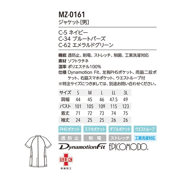 MIZUNOのメディカルジャケットMZ-0161は、医療や介護の現場で活躍する男性用の半袖白衣です。