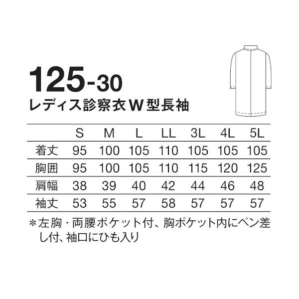 ドクターコート 125-30 レディース ダブル 長袖 制菌 吸汗 白衣 医師 診察衣 医療 クリニック 病院 メディカル KAZEN MEDICAL