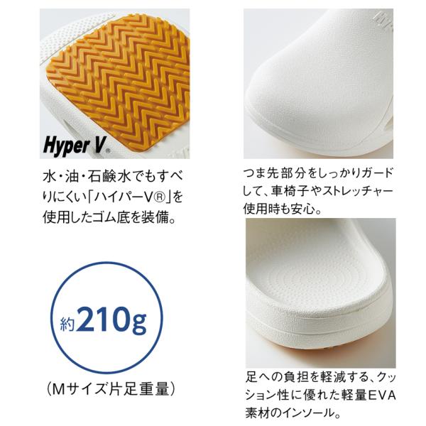 サンダル PITATTO-3 男女兼用 白 ハイパーV底使用 滑りにくい 入浴介助 手術室 医療 看護 介護 クリニック 病院 メディカル 住商モンブラン